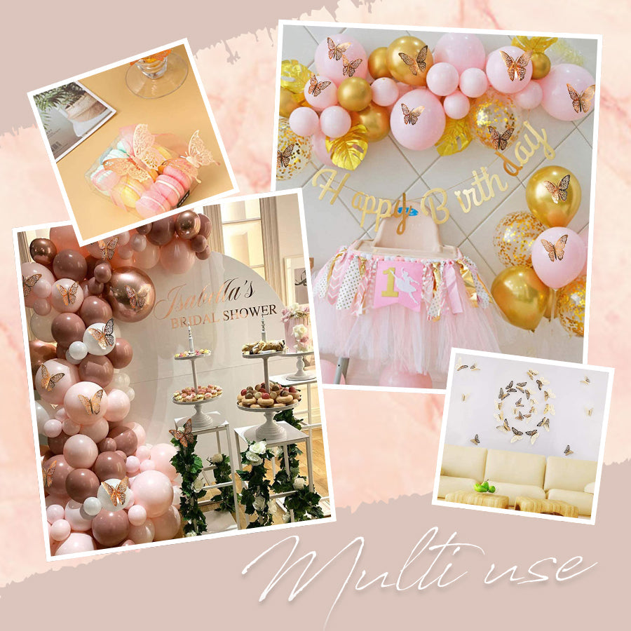 Easy to use, can be applied on all smooth surfaces such as furniture, tile, door, fridge, mirror, window, ceiling, etc. Just use the attached glue dots to stick butterflies to the anywhere you need and done!