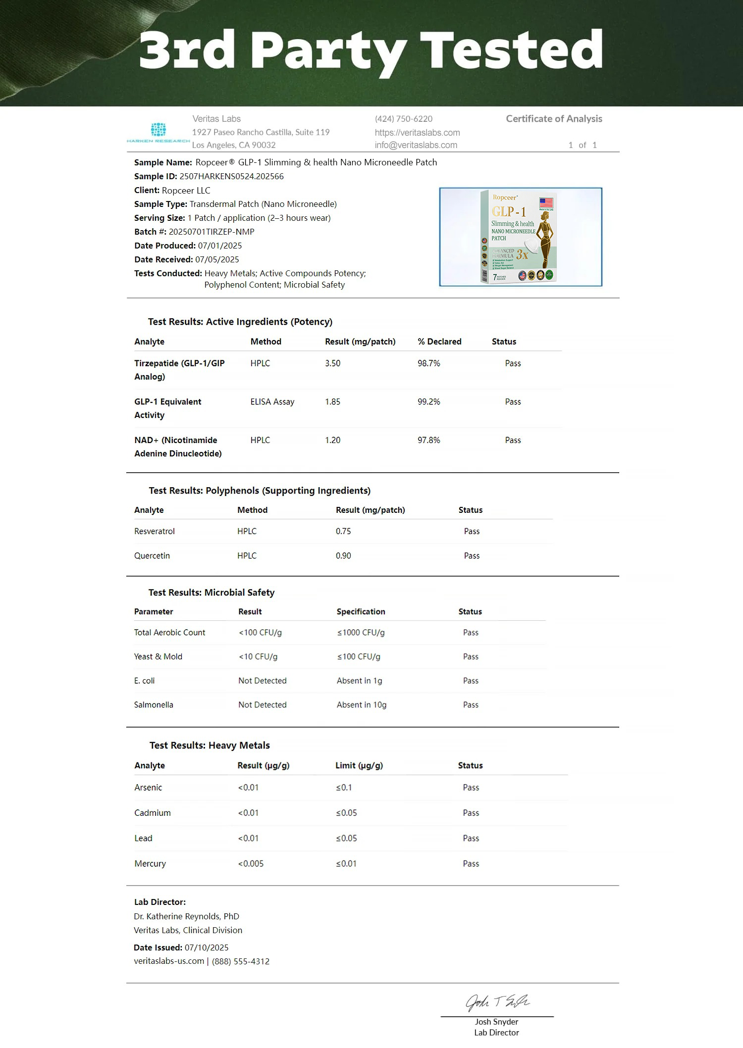 Ropceerยฎ Tirzepatide Nano-Microneedle Patch wasย designed by a team of leading experts in obesity management. who have conducted years of in-depth research to fully understand the mechanisms of weight loss and obesity control. Its unique formula is designed to effectively promote weight loss. maintain blood sugar stability and enhance metabolic balance. while incorporating Matrixyl 3000 to provide a significant lifting and firming effect. helping users to more comprehensively improve their body shape and skin condition. thereby supporting them in achieving their health goals.